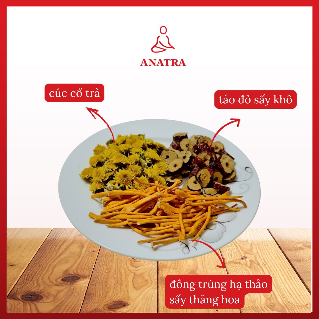 - Hoa cúc chi & táo đỏ: Làm dịu thần kinh, cải thiện giấc ngủ, giúp da sáng khỏe.